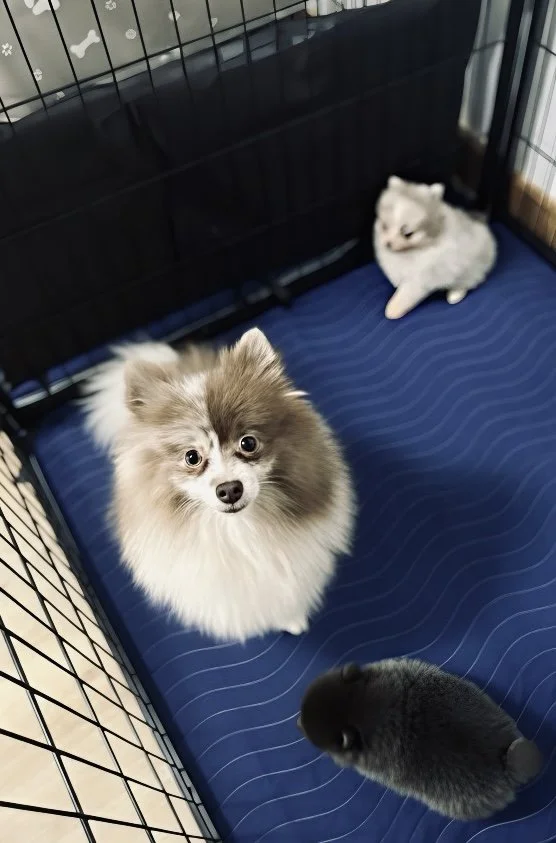 We DO NOT potty train your puppies for you, they are introduced to puppy pads as a choice but it is not enforced or “trained” for them to potty there. Puppies will be puppies! Please understand that puppies go through puppy stages, no matter the breed. The Pomeranian breed specifically goes through puppy uglies where they shed their undercoat completely and their adult coat comes in slowly, no your puppy is not loosing its coat permanently. All Pomeranians range when it comes to coat upkeep, sometimes you will have to brush their hair daily and sometimes it is not as much work, it is up to you to decide how often you must brush them to prevent matting especially during puppy uglies.